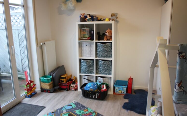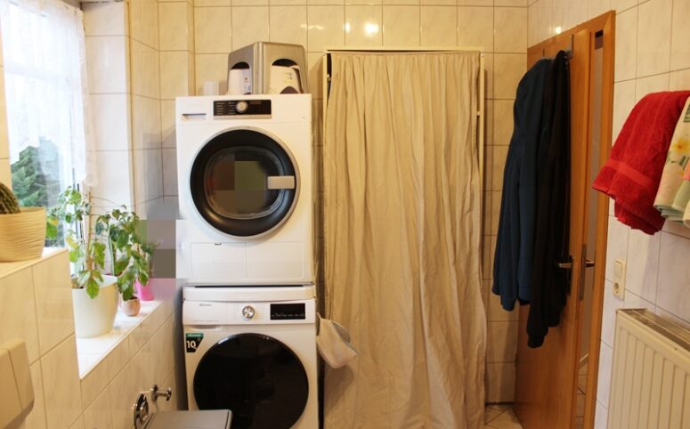 Das Dachgeschoss verfügt über einen großzügigen Flur, drei Schlafzimmer – eines davon mit Zugang zu einem Balkon –, ein Tageslichtbad mit Dusche und Badewanne sowie Anschlüssen für Waschmaschine und Trockner. Zudem gibt es eine Küche mit Einbauküche, ausgestattet mit Herd, Cerankochfeld, Backofen, Spülmaschine und Kühlschrank. Ein offenes Wohn- und Esszimmer sowie eine Abstellkammer runden das Angebot ab.