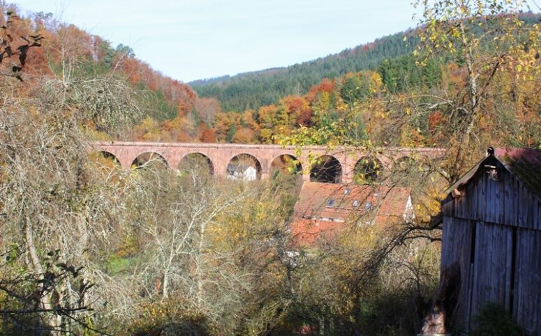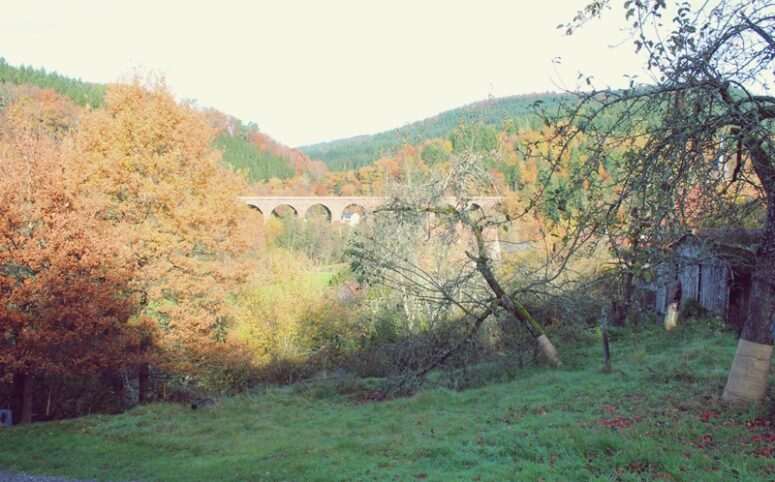 Ländliche Lage im Ortsteil Friedrichsdorf mit Blick auf das Haintalviadukt.