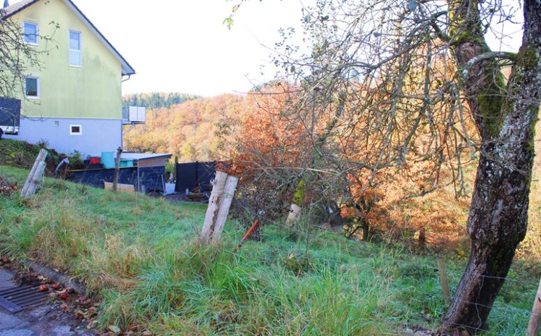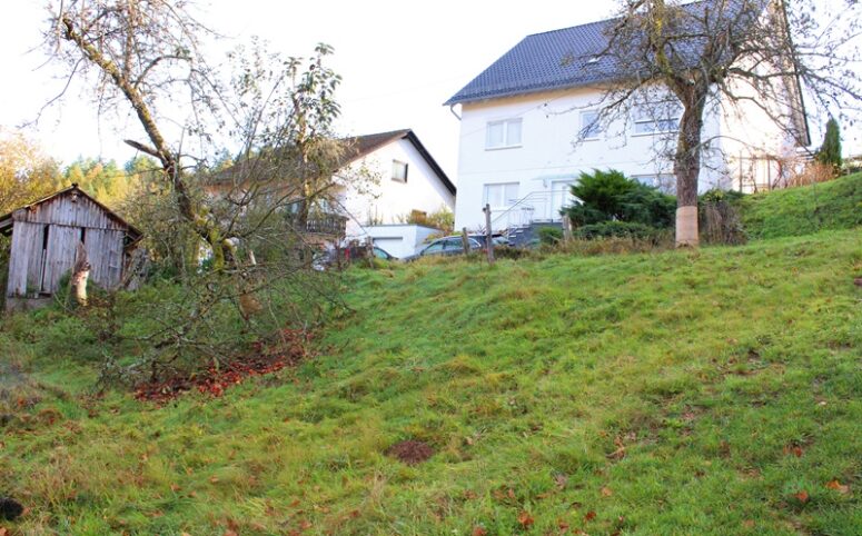 Das Grundstück liegt in Hanglage und ist an der Straßenseite südöstlich ausgerichtet, hangabwärts mit nordwestlicher Ausrichtung.