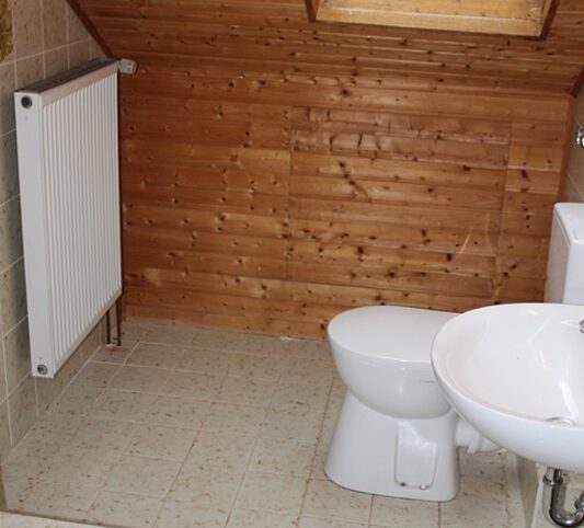 KG: Zwei wohnlich ausgebaute Zimmer – eines der Zimmer könnte ggf. als Küche umgenutzt werden, Duschbad mit Tageslicht.