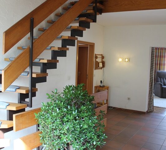 EG: Eingangsbereich mit großer Diele und Blick zur Galerie. Gestaffeltes Wohnzimmer in zwei Bereichen mit direktem Zugang zur Terrasse, Freisitz und Garten. Küche mit älterer Einbauküche. Angrenzend befindet sich das separate Esszimmer. Gegenüber liegt das Schlafzimmer mit einem Durchgangszimmer sowie ein Vollbad mit Badewanne, Dusche und Tageslicht.