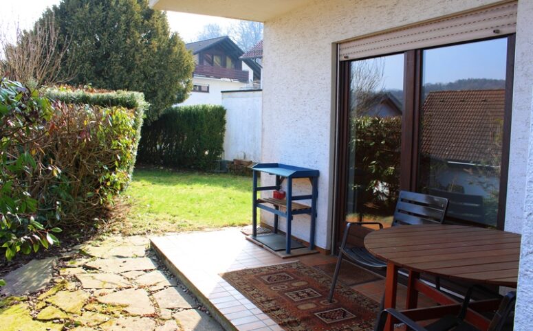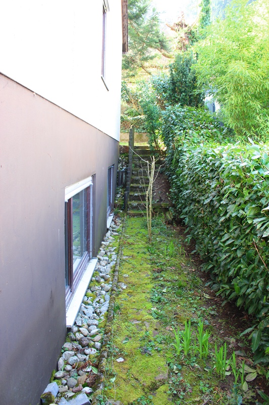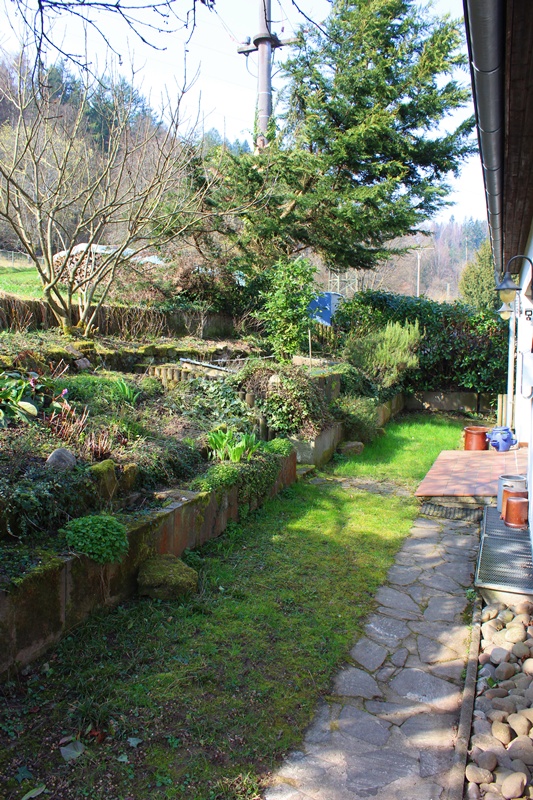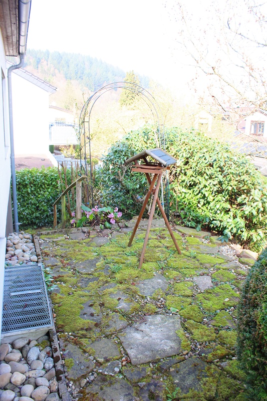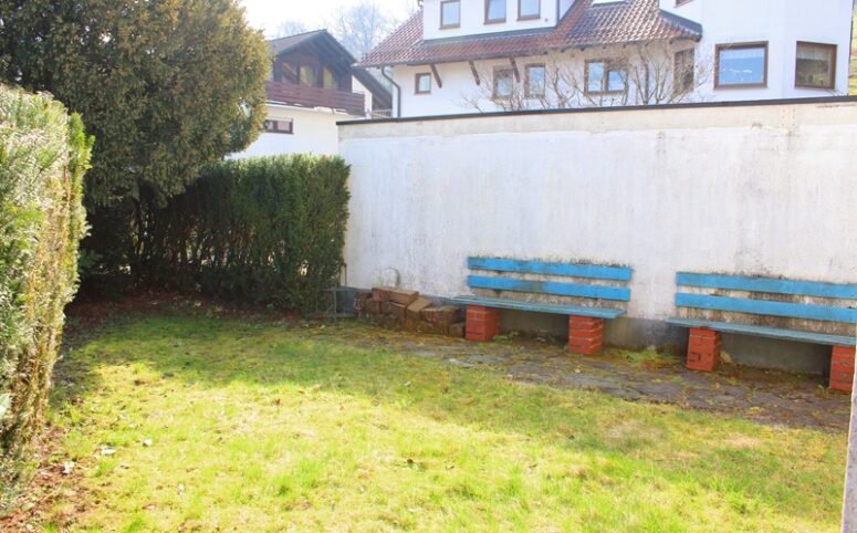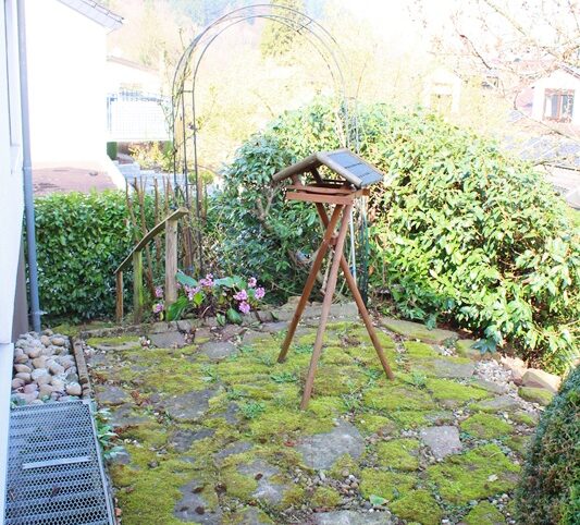 Kleiner gut nutzbarer Garten, Garage (ohne Garagentor).
