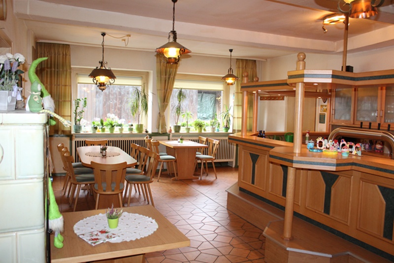Scheune, Einzelgarage, PKW-Stellplätze. Öl-Zentralheizung der Fa. Viessmann (Bj. ca. 1995), Warmwasser teilweise zentral über die Ölheizung, teilweise über Elektro-Durchlauferhitzer bzw. -Boiler. Kellergeschweißter Öltank (10.000l). Der in der Gaststätte vorhandene Kachelofen ist stillgelegt.