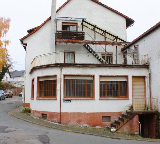 Ehemalige Gaststätte mit zwei Wohneinheiten in OG und DG. Auf der gegenüberliegenden Seite dazugehörig eine Scheune mit angrenzender Garage und PKW-Stellplätzen.