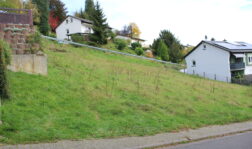 Baugrundstück im Birkenweg, unterhalb der Lönsstraße. Ruhige Anliegerstraße – wenig frequentiert, in der Nähe der Rudi-Wünzer-Halle und des Elchparks. Grundschule fußläufig. Hanglage.