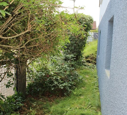 Vollkeller mit Hauswirtschaftsraum, Scheune im hinteren Teil des Gartens, zwei PKW-Stellplätze (hintereinander liegend), eingefriedetes Gartengrundstück auf der gegenüberliegenden Straßenseite, Öl-Zentralheizung (Niedertemperaturkessel von 1990) mit zentraler Warmwasserversorgung.