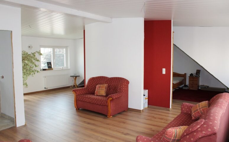 ein Durchgangszimmer mit Zugang zum Dachgeschoss.